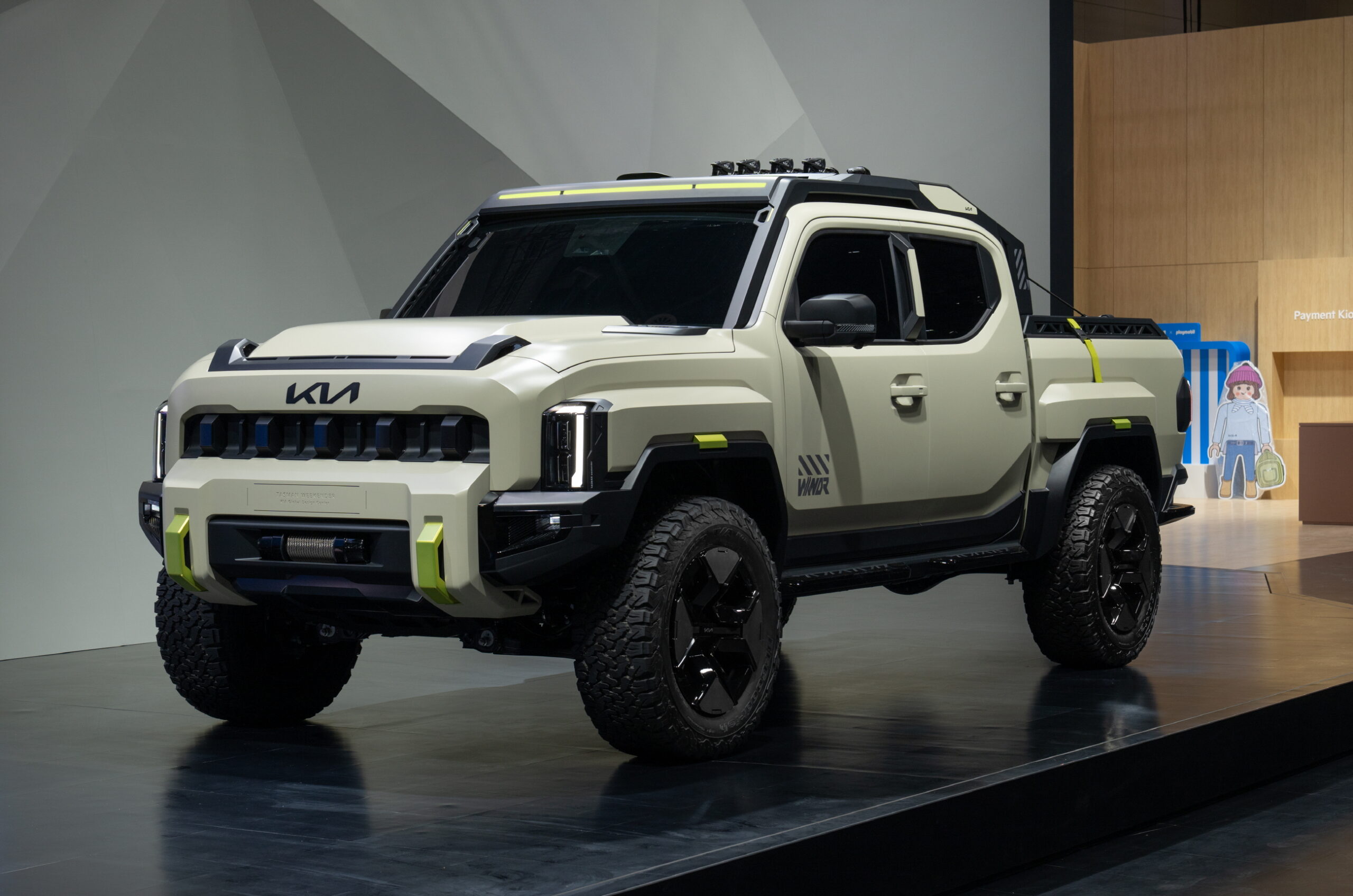 전시관 한쪽에는 정통 픽업 ‘타스만’의 위켄더 콘셉트 모델과 기본형, X-Pro 모델이 전시됐다. 위켄더는 험로 주행용 35인치 타이어, 오버펜더, 루프바스켓, 수납 박스 등이 장착돼 오버랜딩과 겨울 스포츠용 픽업으로 활용이 가능하다. X-Pro 모델은 전용 서스펜션과 락 모드 등 지형별 주행 모드를 제공하며, 기본형 대비 최저지상고가 28mm 높아진 252mm로 설계돼 험지 주행에서의 성능을 강화했다. 전시관 내에는 타스만 1:10 스케일 모형과 순정 액세서리도 함께 비치됐다.