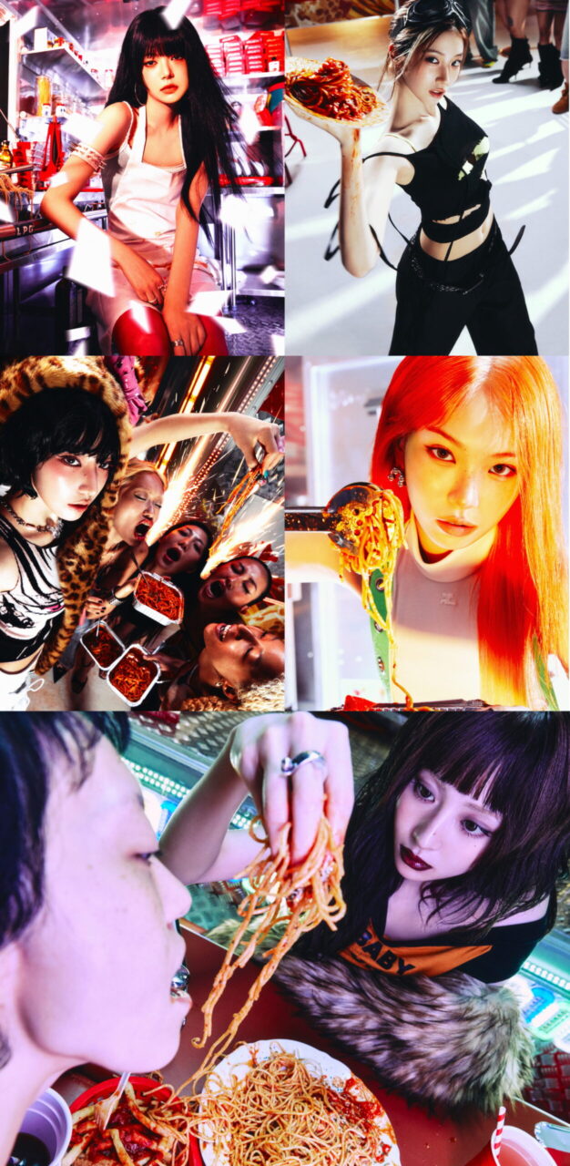 공개된 이미지에서 김채원은 주황빛 헤어와 주근깨 메이크업, 스파게티를 들어 올리는 포즈를 통해 테마의 직관적 상징을 구현했다. 사쿠라는 단발 헤어와 무표정한 시선을 중심으로, 혼잡한 상황 속 무심한 태도를 드러냈다.