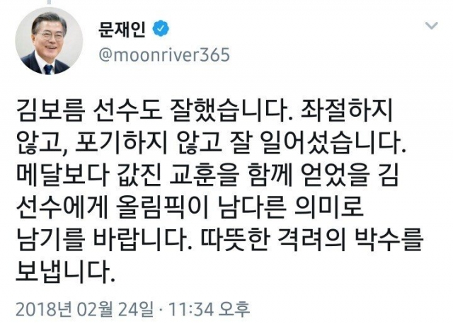 이어 “다만 그 경기 이후 김보름 선수가 힘든 시기를 겪은 것은 굉장히 가슴 아프고 유감스럽게 생각한다. 관심이 굉장히 무겁고 힘들었을 것이라고 공감하는 부분”이라고 덧붙였다.