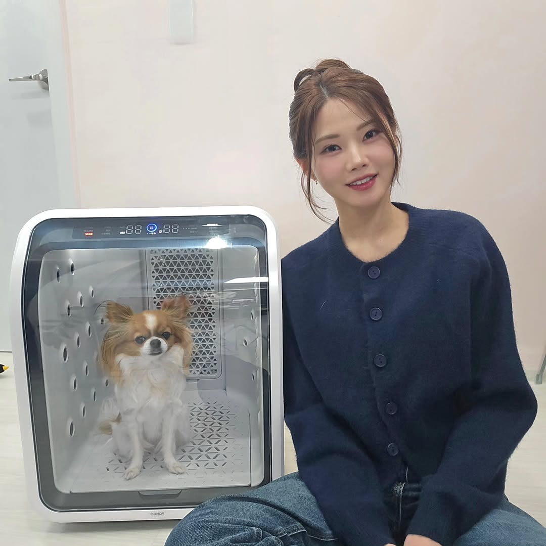 사진에 함께 등장한 반려견은 반투명 도어가 달린 펫 드라이룸 안에 앉아 카메라를 바라보고 있다. 정면을 응시하거나 고개를 살짝 든 채 배아현을 바라보는 모습이 연달아 포착됐고, 배아현 역시 바닥에 앉아 반려견과 눈을 맞추며 다정한 교감을 나누는 모습을 보여줬다.