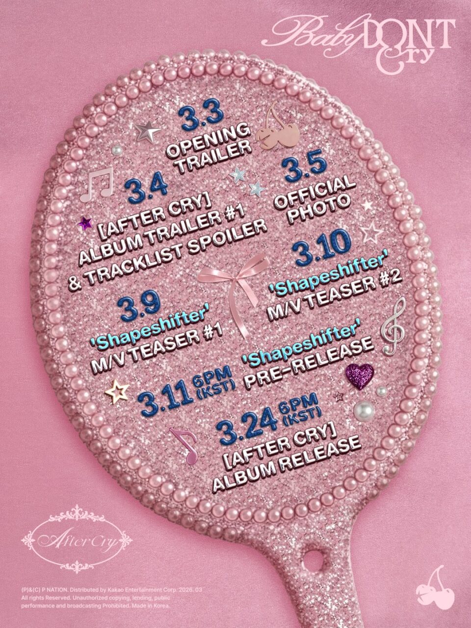 베이비돈크라이는 지난 4일 오후 공식 사회관계망서비스(SNS) 채널에 미니 1집 ‘애프터 크라이(After Cry)’ 트레일러와 트랙리스트 스포일러, 선공개곡 ‘셰이프시프터’ 프로모션 캘린더를 차례로 올렸다. 애프터 크라이는 베이비돈크라이가 새롭게 선보이는 눈물 3부작 프로젝트의 시작을 알리는 앨범이다.