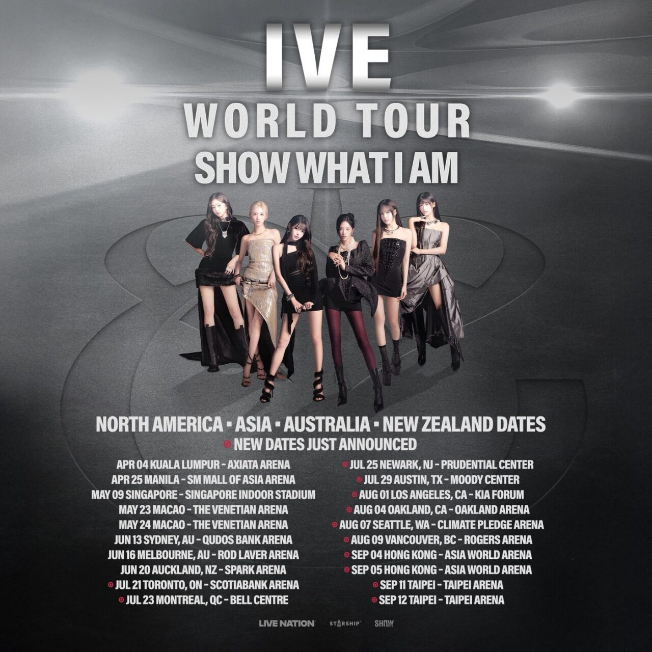 [트러스트=전우주 기자] 그룹 아이브(IVE)(안유진·가을·레이·장원영·리즈·이서)가 두 번째 월드 투어 ‘쇼 왓 아이 엠(SHOW WHAT I AM)’의 북미·아시아 추가 일정을 공개했다.