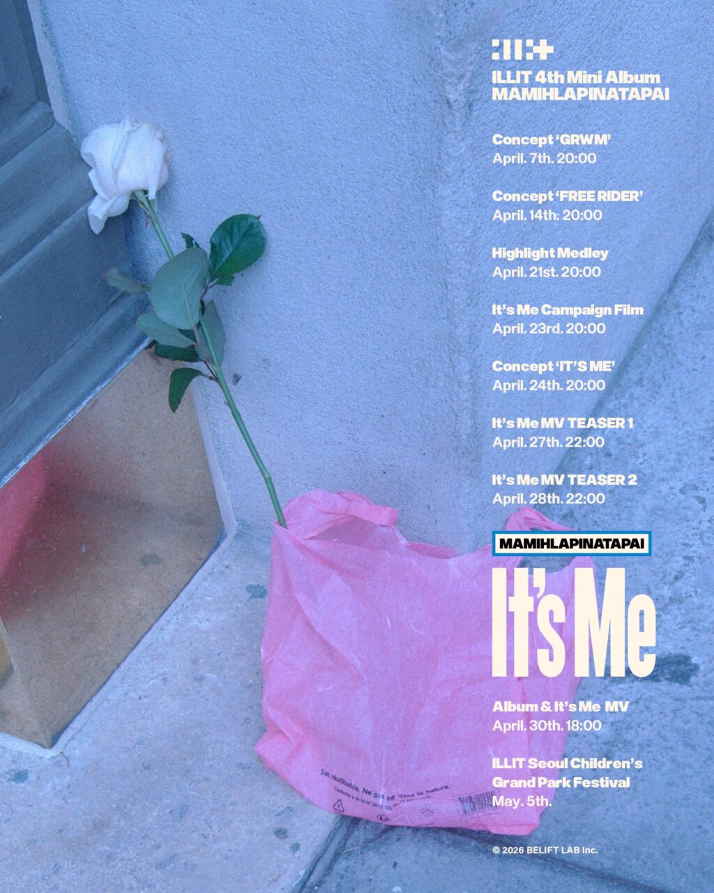 이번 캘린더 이미지가 풍기는 분위기도 기존 활동과는 다른 결을 드러냈다. 비닐봉지 안에 무심하게 놓인 장미꽃 한 송이는 아일릿이 앞서 보여준 귀엽고 아기자기한 이미지와 다른 감각을 전면에 내세운 장치다. 이번 신보가 비주얼과 음악 모두에서 변화를 담았다는 점을 함께 드러낸다.