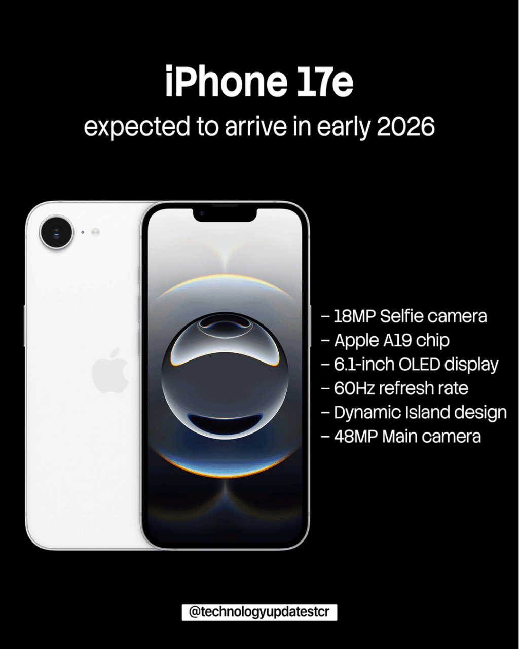 [트러스트=전우주 기자] 애플이 내년 출시할 아이폰 17e는 화면 크기를 유지하면서도 주요 사양을 최신화한 소형 스마트폰으로 구성될 예정이다. 업계에 따르면 이 제품은 기존 보급형 라인업을 계승하면서 ▲6.1인치 디스플레이 ▲A19 칩셋 ▲센터 스테이지 전면 카메라 ▲애플 자체 C1 모뎀을 탑재할 가능성이 있는 것으로 전해졌다.