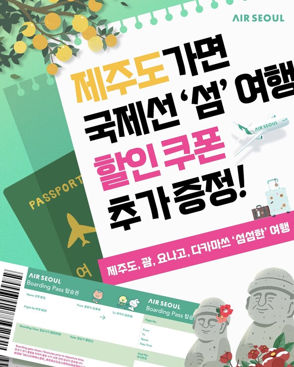 – 에어서울, 김포~제주 탑승객에 국제선 할인 쿠폰 제공