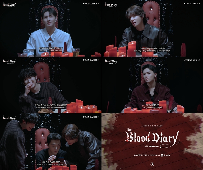 하이브는 지난 30일 스포티파이 내 공식 비디오 팟캐스트 채널 STAN:A(스탠에이)를 통해 블러드 다이어리 예고편을 선보였다. 이 프로그램은 STAN:A가 처음 내놓는 콘텐츠다. 그동안 앨범 서사에서 뱀파이어 모티프를 이어온 엔하이픈이 이번에는 직접 뱀파이어가 된 설정으로 미스터리 스토리텔링을 펼친다는 점이 중심에 놓였다.