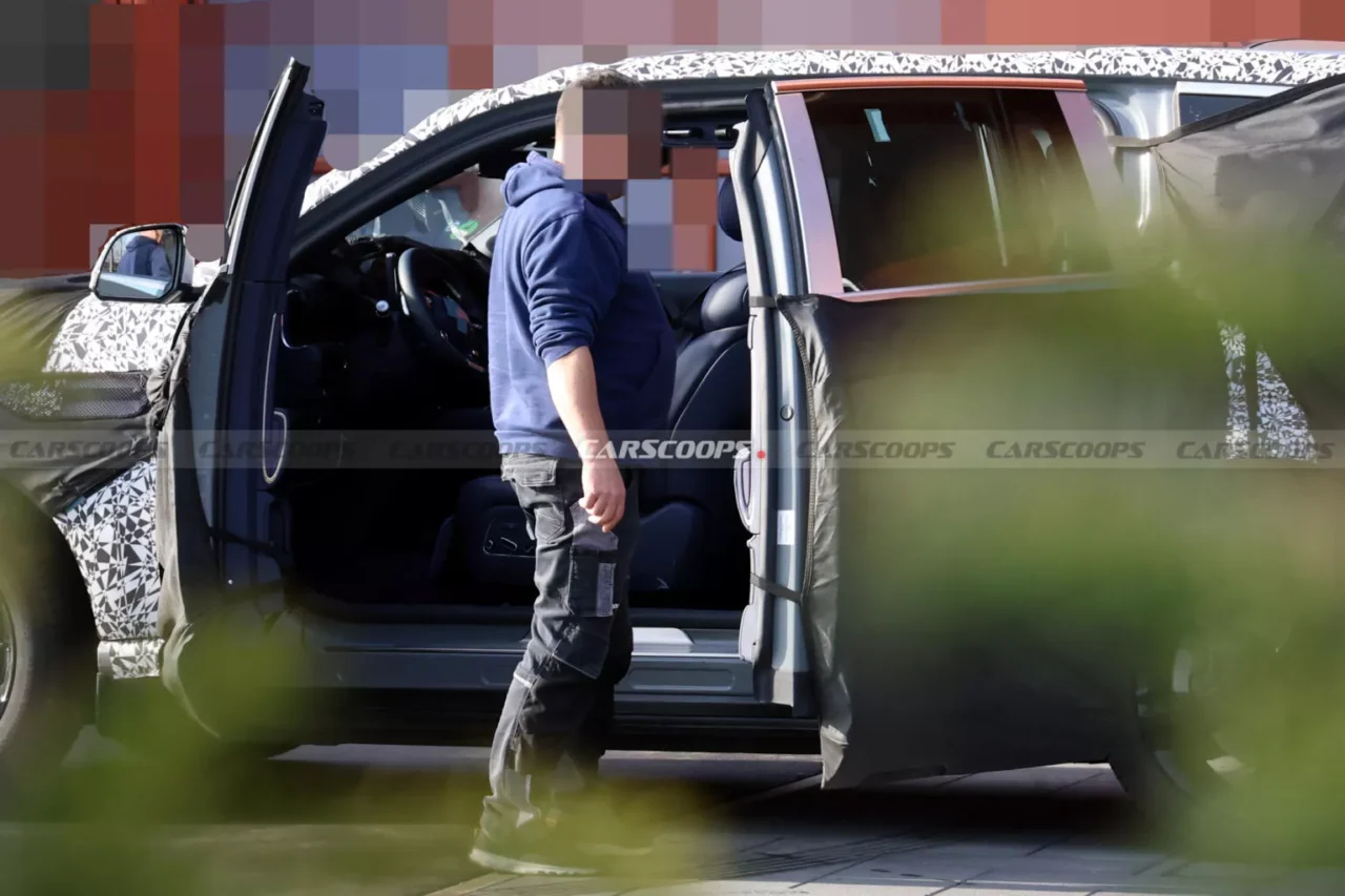 이전 촬영 이미지에서는 2열이 독립형 좌석 구조로 분리돼 있으며, 좌석 사이에는 대형 센터 콘솔이 자리 잡고 있다. 해당 콘솔은 무선 충전 패드와 터치 디스플레이가 결합된 일체형 장치로 구성돼 있는 모습이다.