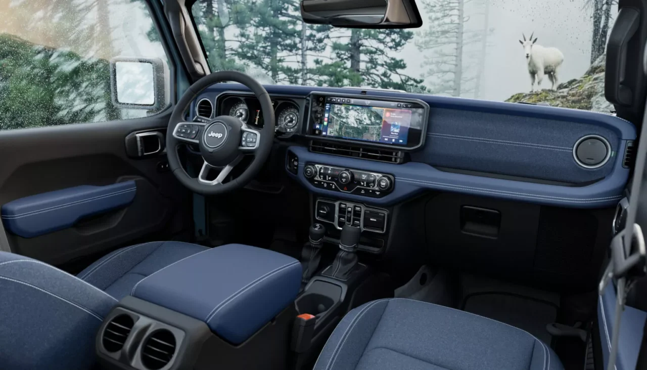외관에는 앤빌 하드톱과 같은 색상의 그릴 서라운드와 함게 산 그래픽이 들어간 블루 아가베 사이드 스트라이프를 적용했다. 추가로 블루 아가베 후드 데칼과 후면 ‘4 Wheel Drive’ 그래픽을 배치했다. 또한 2017년 이후 처음으로 사하라 트림에도 적용할 수 있다.