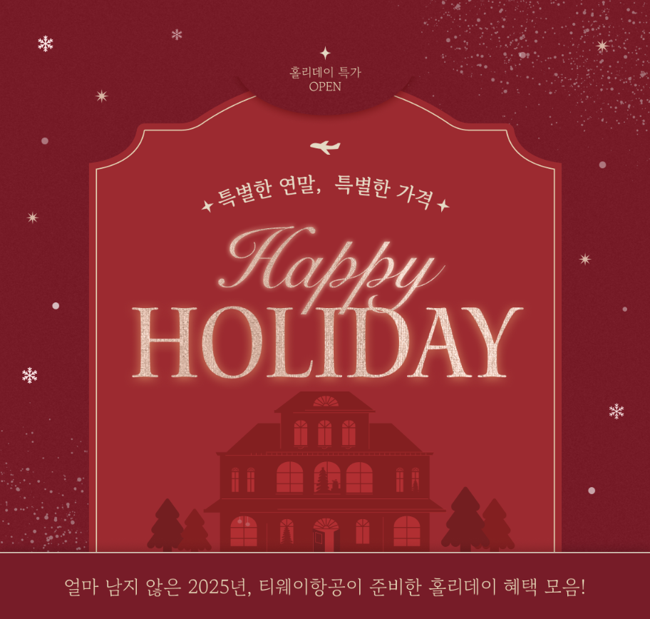 티웨이항공 회원은 항공권 예매 시 할인 코드 ‘FLYDEC’를 입력하면 유럽과 시드니, 밴쿠버 노선에서 최대 10%까지 할인된 요금으로 예약할 수 있다. 할인은 이코노미석과 비즈니스 세이버 클래스 모두에 적용되며, 항공권 예약 과정에서 편도 또는 왕복 선택 후 가격 확인 단계에서 할인코드 배지가 표시되는지 확인한 뒤 예매하면 된다.