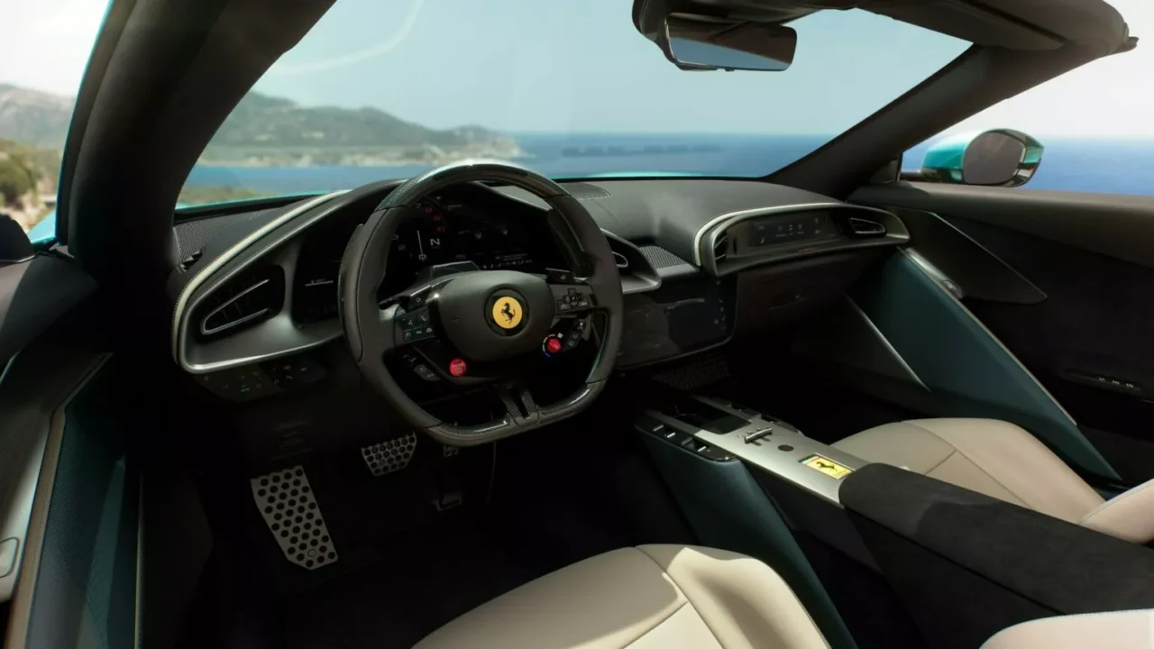 실내는 2+2 구성으로, 새로 설계한 센터 콘솔을 중심으로 10.25인치 인포테인먼트 디스플레이와 15.6인치 디지털 계기판, 8.8인치 조수석 디스플레이를 배치했다. 운전자는 페라리 특유의 마네티노를 통해 ▲웨트 ▲컴포트 ▲스포츠 ▲레이스 ▲ESC 오프 모드를 고를 수 있다.