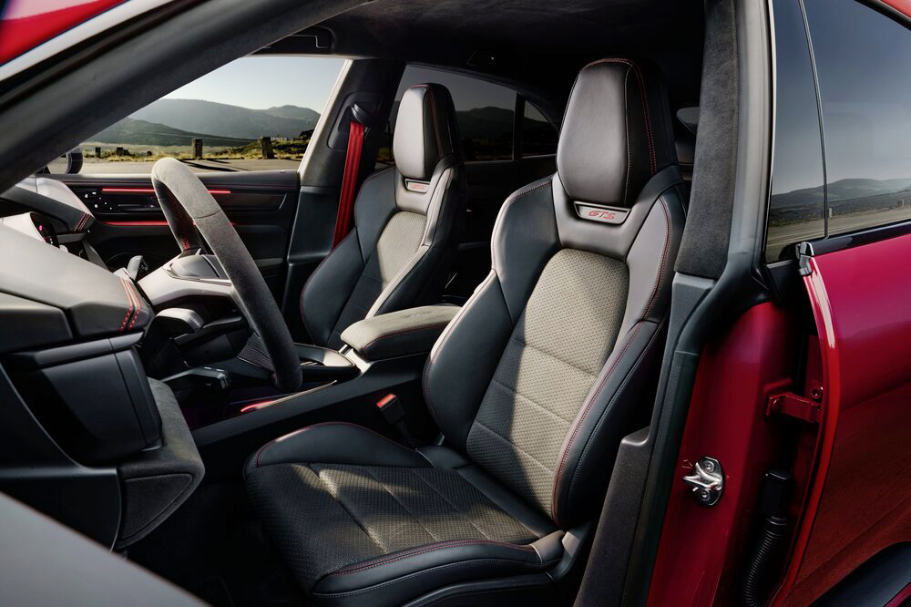 인테리어 패키지를 선택할 경우 외장과 동일한 색상인 카민 레드, 슬레이트 그레이 네오, 루가노 블루 중 하나로 인테리어 포인트 컬러가 반영되며, 안전벨트, 장식 스티치, ‘GTS’ 레터링, 스티어링 휠 배지 등에도 동일한 컬러가 입혀진다. 실내 트림에는 카본 인테리어 패키지가 적용되며, 대시보드와 도어 패널 등 주요 부위에 탄소섬유 소재가 사용된다.